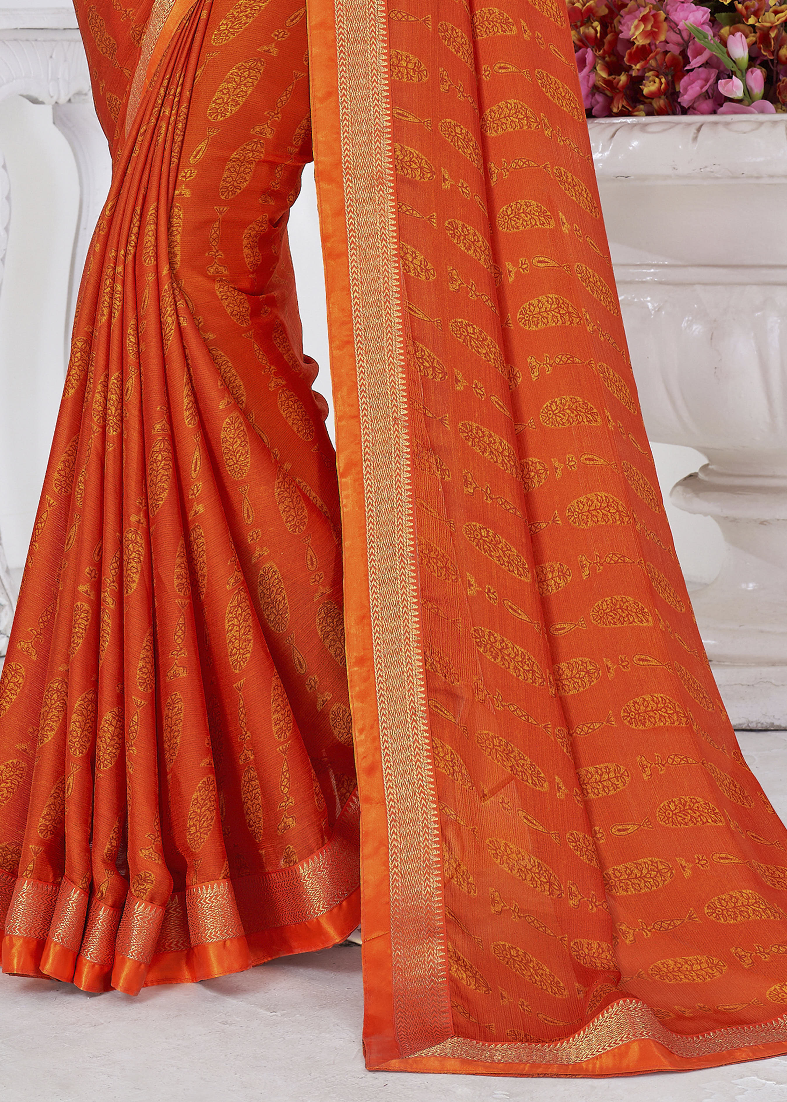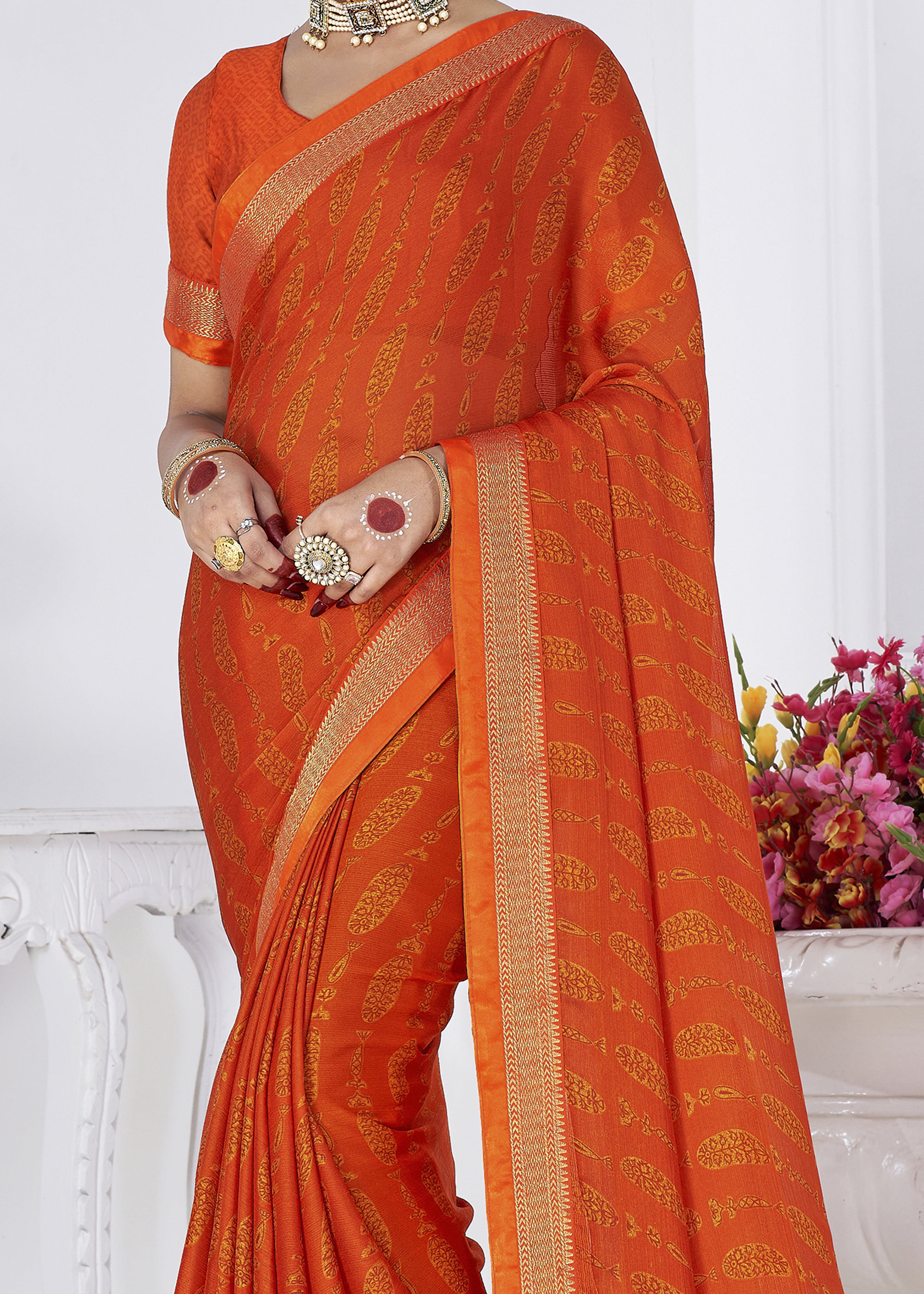 Elegant Design: The Orange Chiffon Bandhani Print Saree combines tradition with elegance, perfect for enhancing your style.